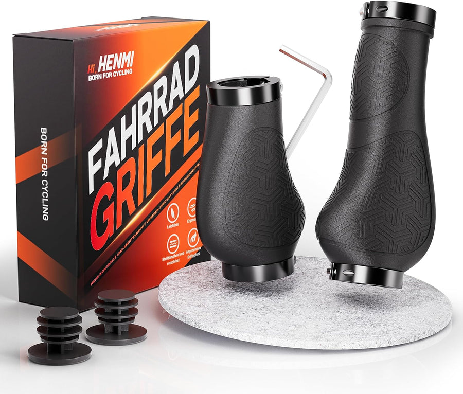 - 【Perfekter Halt 】Dank speziell konzipierter comfort grip design, die HENMI fahrrad griffe nicht nur hervorragende rutschfestigkeit gewährleistet,sondern auch bei Nässe oder Schweiß vollen Halt bietet. Entspannte Fahrten frei von Schmerz & Taubheit!