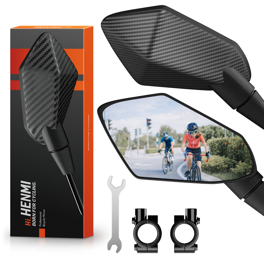 - Stabil und Langlebig: Fahrradspiegel Rückspiegel besteht aus Metallstange und PA+PP Material mit hochschlagfestem Rahmen, der Vibrationen minimiert und den Lenker schützt. HENMI Fahrradzubehör rückspiegel ist für alle Wetterbedingungen geeignet.
